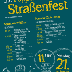 Am 37. Poppelsdorfer Straßenfest spielen wir ab 21 Uhr auf der Sparkassen-Bühne/Kekuléstrasse.