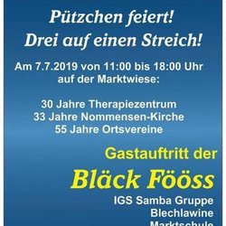 2019 ist das Jahr der Jubiläen in Pützchen: 55 Jahre Ortsvereine Pützchen-Bechlinghoven, 33 Jahre Evangelische Gemeinde Beuel-Ost – Nommensen Kirche und 30 Jahre Therapiezentrum Bonn. Gefeiert wird gemeinsam und mittendrin auf den Marktwiesen in Pützchen.